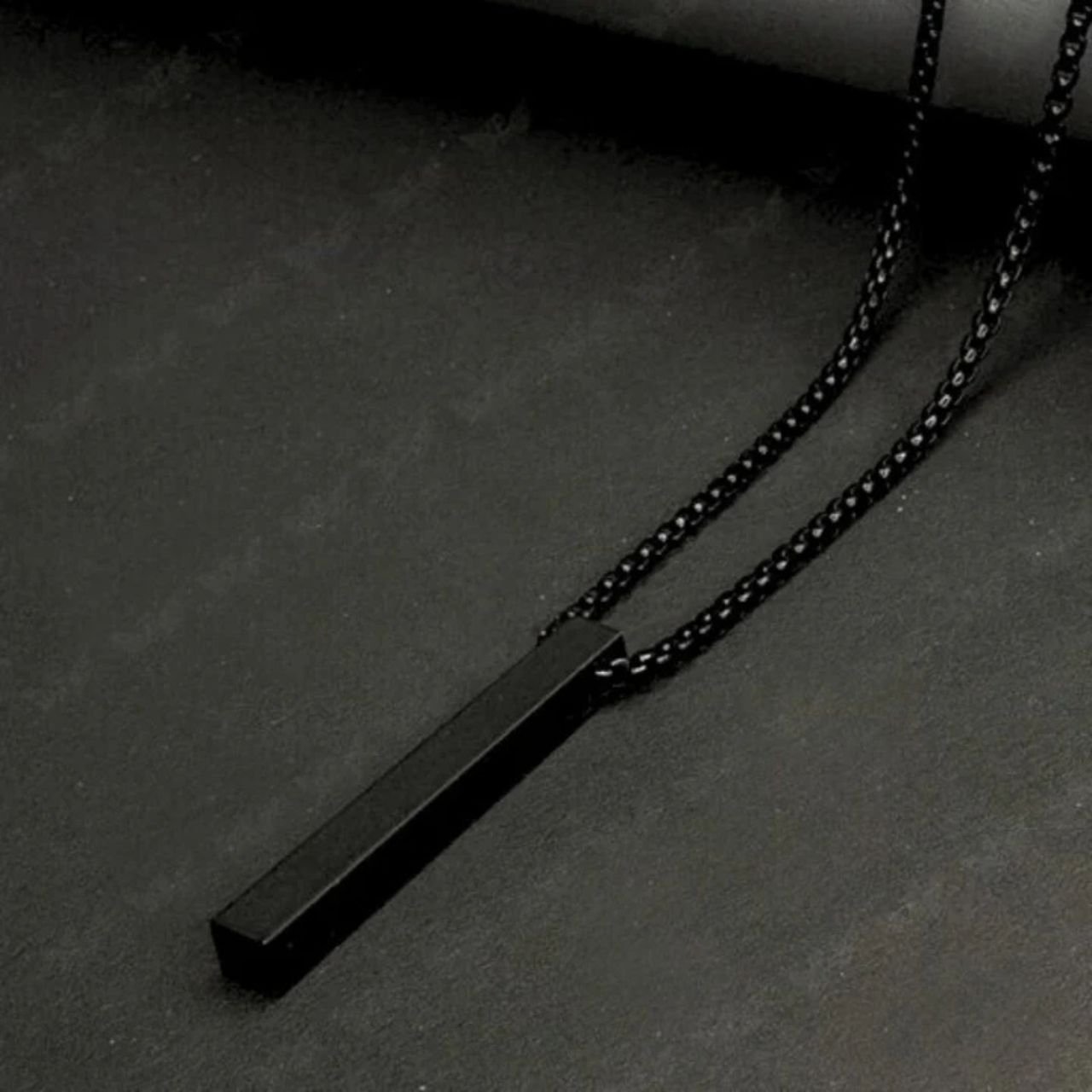 Elevate your style with the Black Bar Pendant Chain Necklace, crafted for the modern man who values simplicity and sophistication. Its sleek black bar pendant embodies minimalism, making it the perfect addition to any outfit, whether casual or formal.