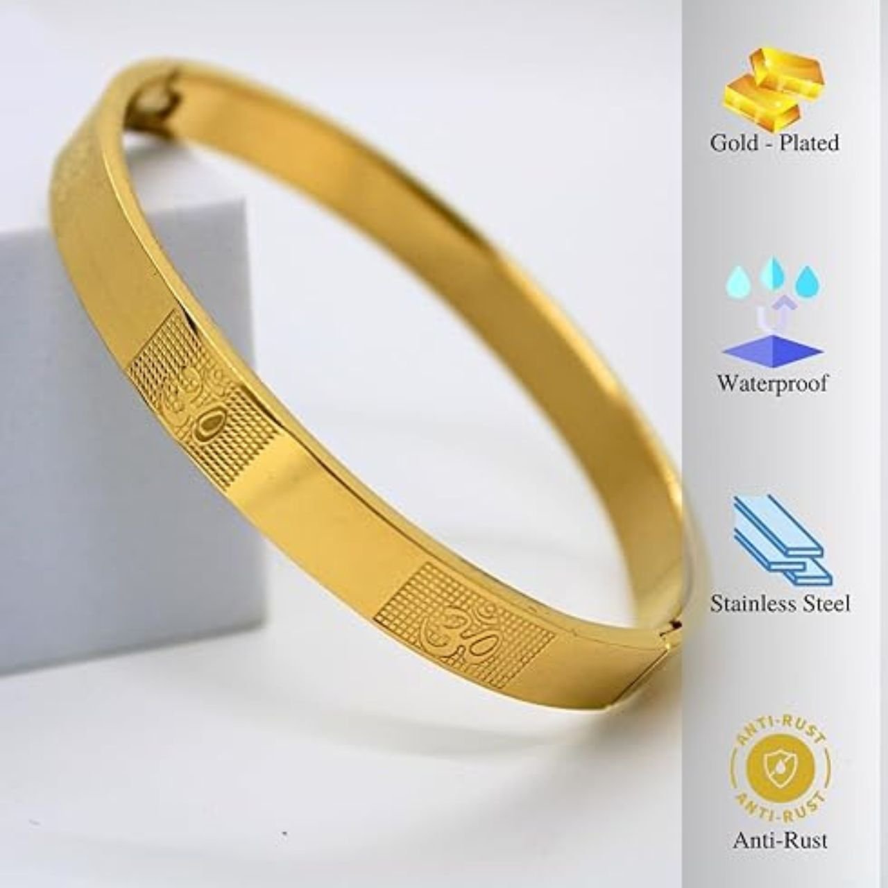 Om Carving Premium Bracelet For Men – Spiritual Stainless Steel Om Bracelet
