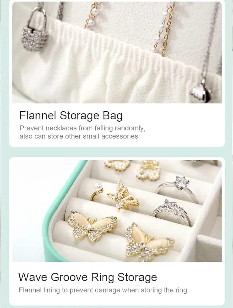This lightweight jewelry case is the perfect size to slip into your bag, suitcase, or even carry-on. With thoughtfully designed compartments, it ensures that your delicate items stay tangle-free and protected during your journeys.