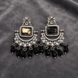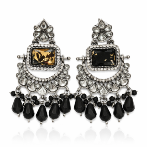 Be the first to review “Rajputana Antique Silver-Tone Black Stone Chandelier Earrings for Women | Designer Ethnic Dangle Earrings with Cubic Zirconia & Teardrop Beads for Party & Wedding Wear”