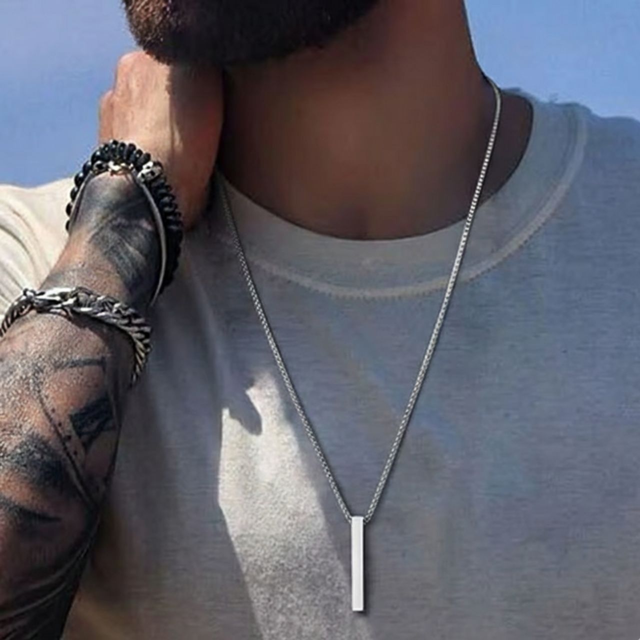 Bootsy Black Bar Pendant Chain Necklace for Men | Durable Stainless Steel | Men's Black Jewellery Accessories | Gift for Husband, Boys, Birthdays